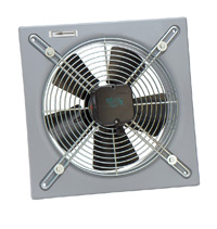 Ventilator axial pentru montaj pe perete. Cadru metalic rectangular.